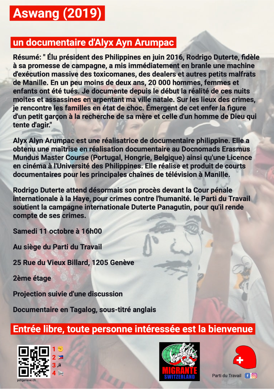 Rodrigo Duterte attend désormais son procès devant la Cour pénale internationale à la Haye, pour crimes contre l’humanité. le Parti du Travail soutient la campagne internationale Duterte Panagutin, pour qu’il rende compte de ses crimes.